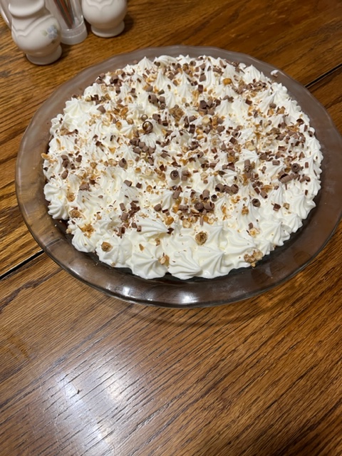 1. Mother’s Day. My family does a good job making me feel special on Mother’s Day. We had a mostly “man-made” meal, though Mittu said she and Timothy helped with the dessert. Jim grilled his trademark teriyaki chicken, Jesse made homemade baked macaroni and cheese, and Jason made Chocolate Pretzel Pie. Jim and Jesse worked together on corn on the cob. It was all so good! I didn’t get a picture of the whole dinner, but here’s the dessert: