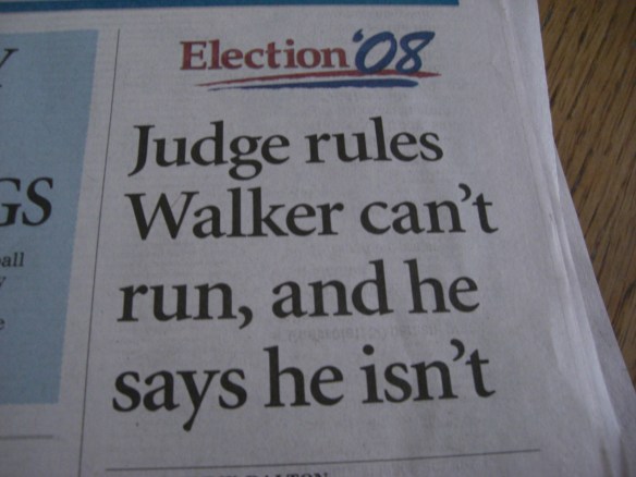 Speaking of going on too long, I need to get going, but I wanted to share one last thing. A few days ago I mentioned I was chuckling over a mom in a store calling to her little son, “Walker, don’t run!” Well, this morning there was a related headline in the paper that made me chuckle again: