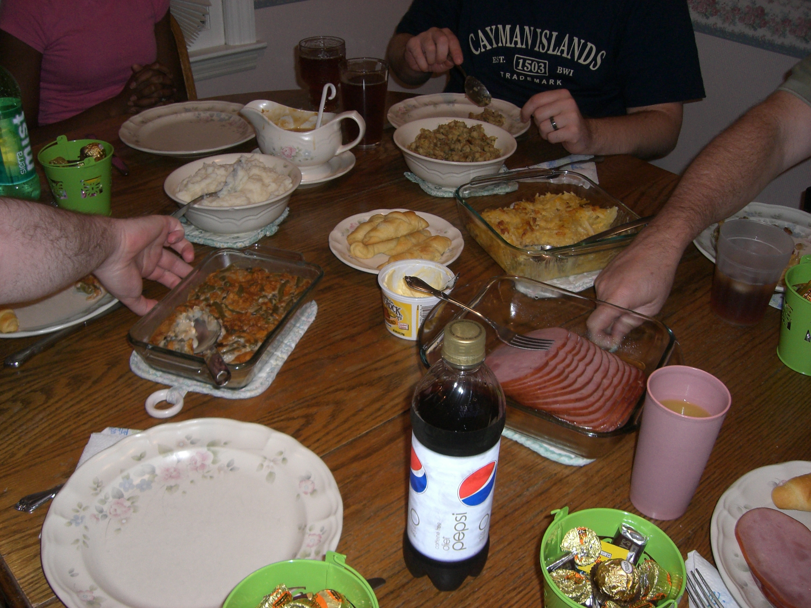 We were sad that Jason and Mittu weren’t able to go with us, but they checked in with Grandma, took care of the dog, got the mail, etc. for us, and I noticed that they did some vacuuming and folded a load of laundry left in the dryer, so that was wonderful. We had lamented that we wouldn’t get back until Easter evening and so would miss our usual Easter festivities, but when we got home, Mittu had set the table with fresh spring flowers and little Easter treats, and then she and Jason brought over a ham dinner with all the accouterments. It’s so nice to have such a sweet and thoughtful daughter-in-law! (And son, too. π )