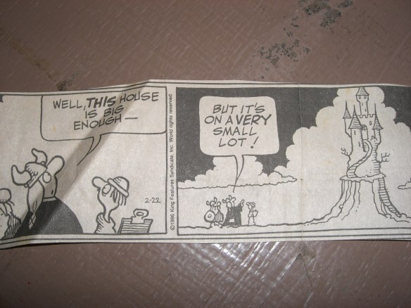 So while Jim, Jeremy, and Jesse took care of some of the bigger items, I sorted through boxes of old magazine articles and recipes (that I had planned someday to file :roll:), letters, notes, etc. I just flipped through and threw away most of anything that appeared to be torn out of a magazine or newspaper — I figured if I had done without those clippings this long, I probably didn’t need them. But this struck me funny in light of all of our house-hunting: