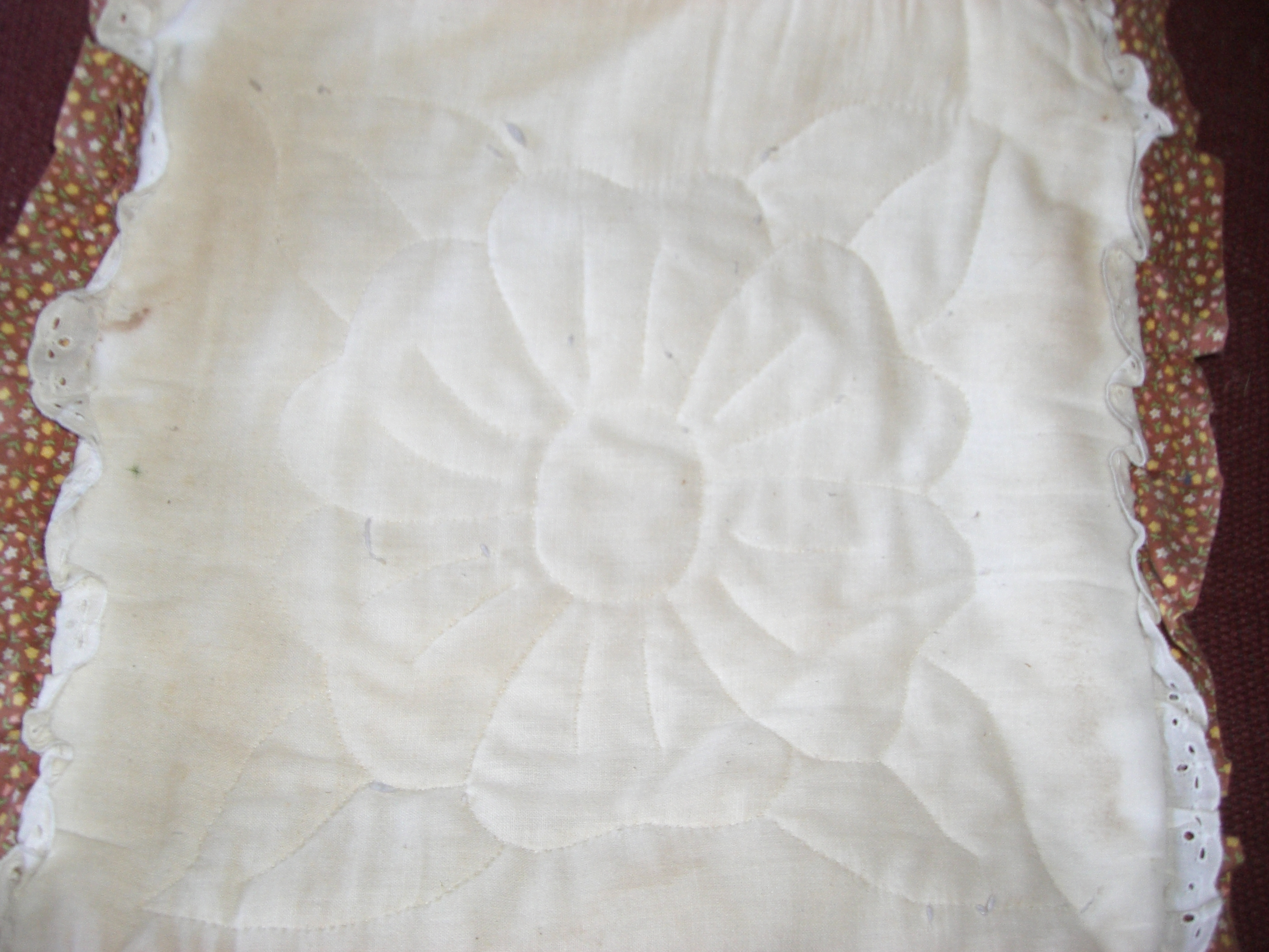 I also found a pillow from a quilting class I took. I didn’t like the backing I had used, so I cut it off and want to see about remaking it with other fabric.