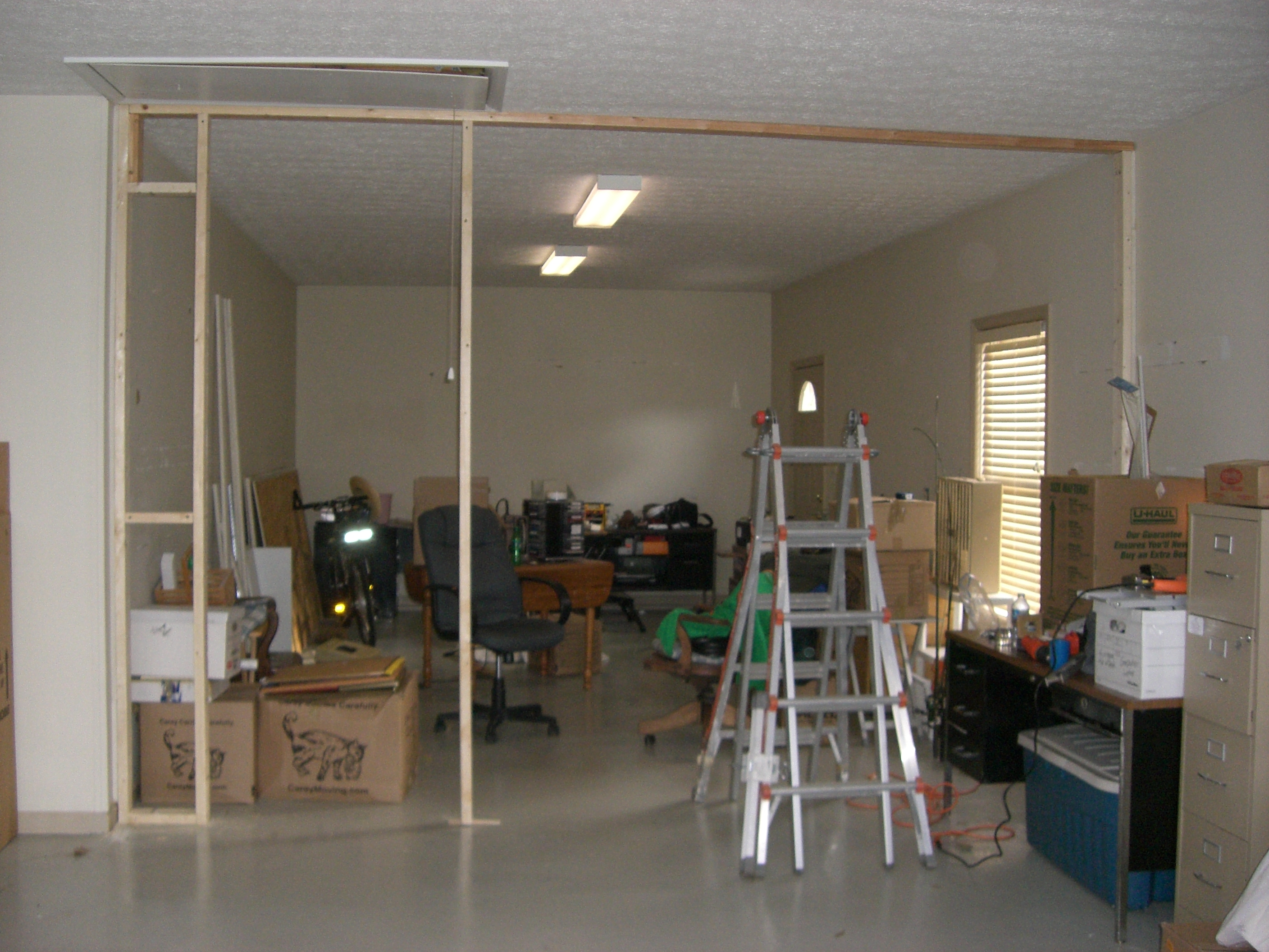 5. Starting on a new room. I may have mentioned that our new home has what is classified as a three car garage in an L shape, but my husband planned to turn the third car space into an office/guest bedroom. That project was planned for some time within the first year here. But with Jason and Mittu here and Jeremy coming for Thanksgiving, my husband decided to try to get that room habitable before then. The boxes from the attic were in that space, so we sorted through those and then my husband and Jesse were able to organize them into the attic (and it is so nice to have an organized attic!) one weekend. Then my husband had to take down pegboards and such from the walls and last weekend started putting up the framing for the wall and door that will be between the garage and the room. At some point we’ll put a door actually into the house from that room, but that is probably one of the bigger undertakings that will have to wait: for now we’ll have to go through the garage from that room to the house.