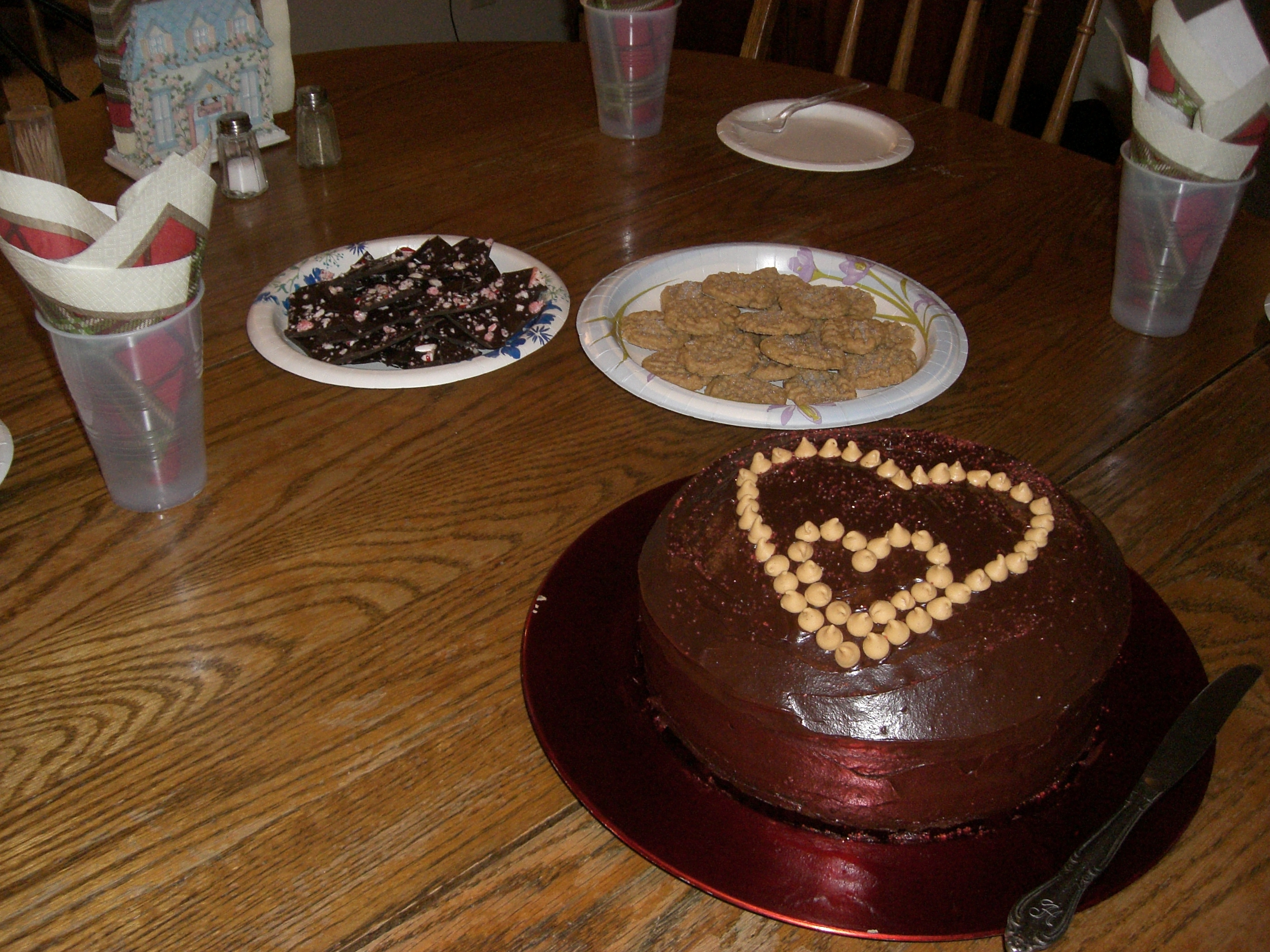 Then we had a great meal at a local restaurant for dinner, and when we got home, Mittu had made a cake for us as well as some peanut butter cookies and peppermint bark: