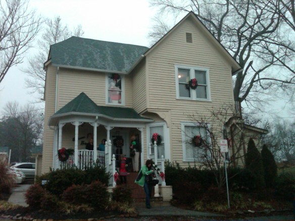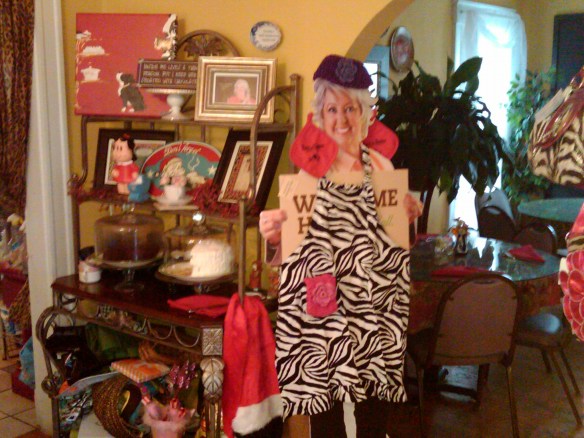 Sorry about the blurriness — I’d forgotten the camera and we were trying to use cell phones. I took a picture of my lunch, but it turned out even blurrier. The proprietor was a big Paula Deen fan: