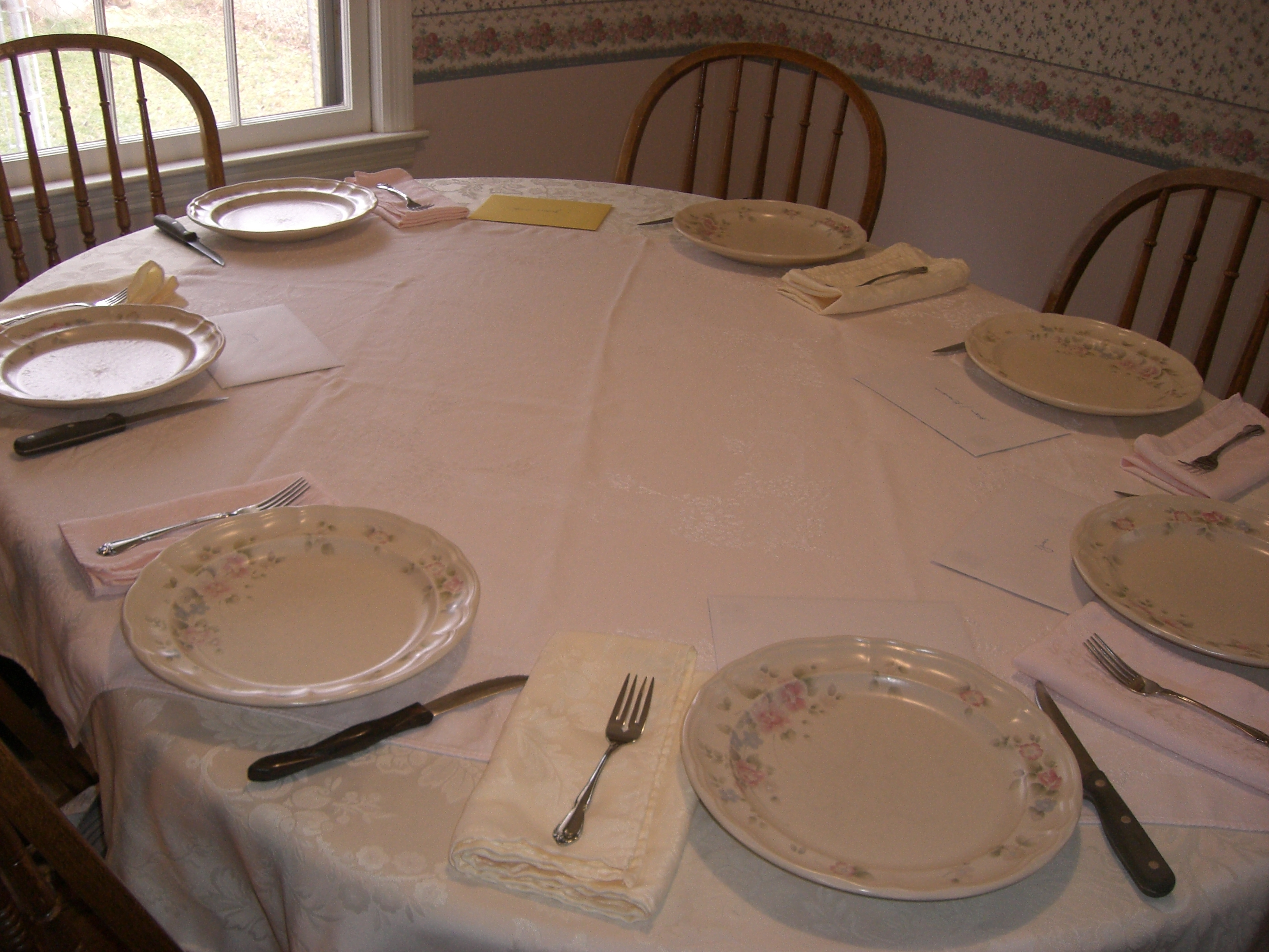I’m happy to help as much as I can. The people who coordinated the Dinner for Six printed up cards with information about how it all worked and left them on the Welcome Desk at our church and had a sign-up sheet there for people who were interested to sign up with their addresses, phone numbers, and e-mail addresses. Then they placed announcements in the church bulletin several weeks ahead of the final sign-up date, and often one of the coordinators would stay near the Welcome Desk after church in case there were questions. After the final sign-up date, they would divide the people who signed up into groups of six (sometimes more if it didn’t divide evenly or if there were single people who wanted to participate, though sometimes single people signed up in pairs as one of the groups to host. If they did have a group of more than six, they’d call the people in that group to make sure it was ok). How they worked out how to group people with new people, I don’t know – they must’ve had a spread sheet of some kind. Anyway, once they worked it all out, they printed up cards for each participant with information about who was in their group, their contact information, and which couple hosted first, second, and third. Then it was up to the people involved to schedule times to get together.