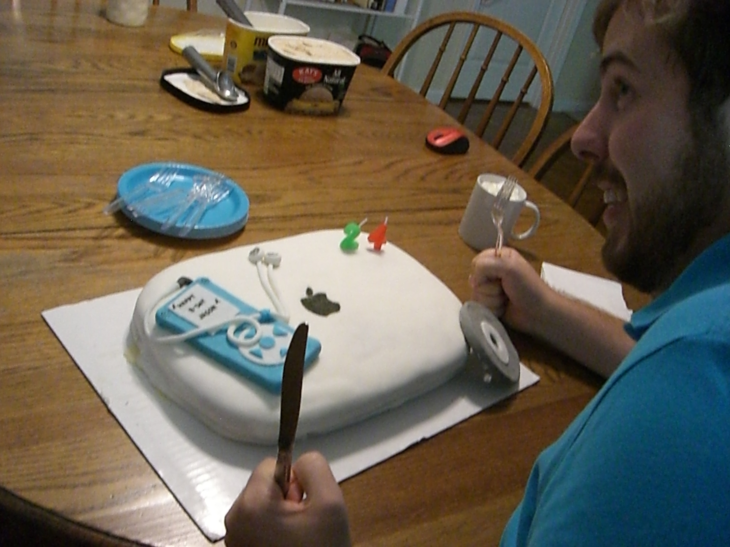 2. Jason’s cake. A friend of Mittu’s made this cake shaped like a Mac book — commemorating one of Jason’s loves 🙂 along with an iPod on top.