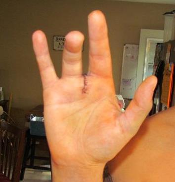 Your nephew’s hand does look good. In fact I had to look at my hand and then back at his to figure out which finger was missing. I pray for a quick recuperation and no long term problems with his hand.