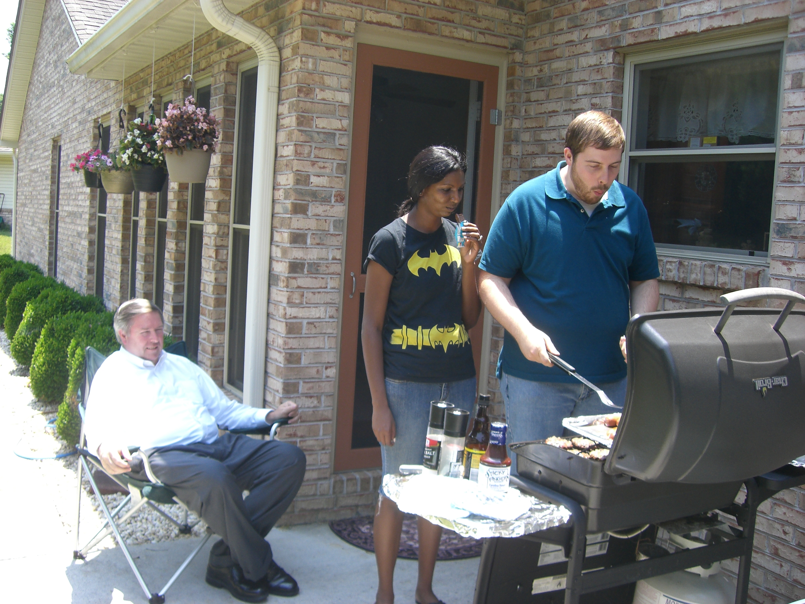 It was nice to see a glimpse of the outside of your home 🙂 And, yes, those roses look great. That photo of your husband looks almost staged! Yes, he’s relaxing while someone else grills! So nice your family enjoys being together.