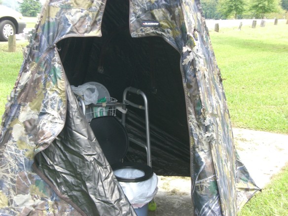 Because this area does not have public restrooms, Jim set up a “toilet tent” away from the picnic area. 🙂 None of us wanted to have to use it, but it was nice to know it was there if needed.