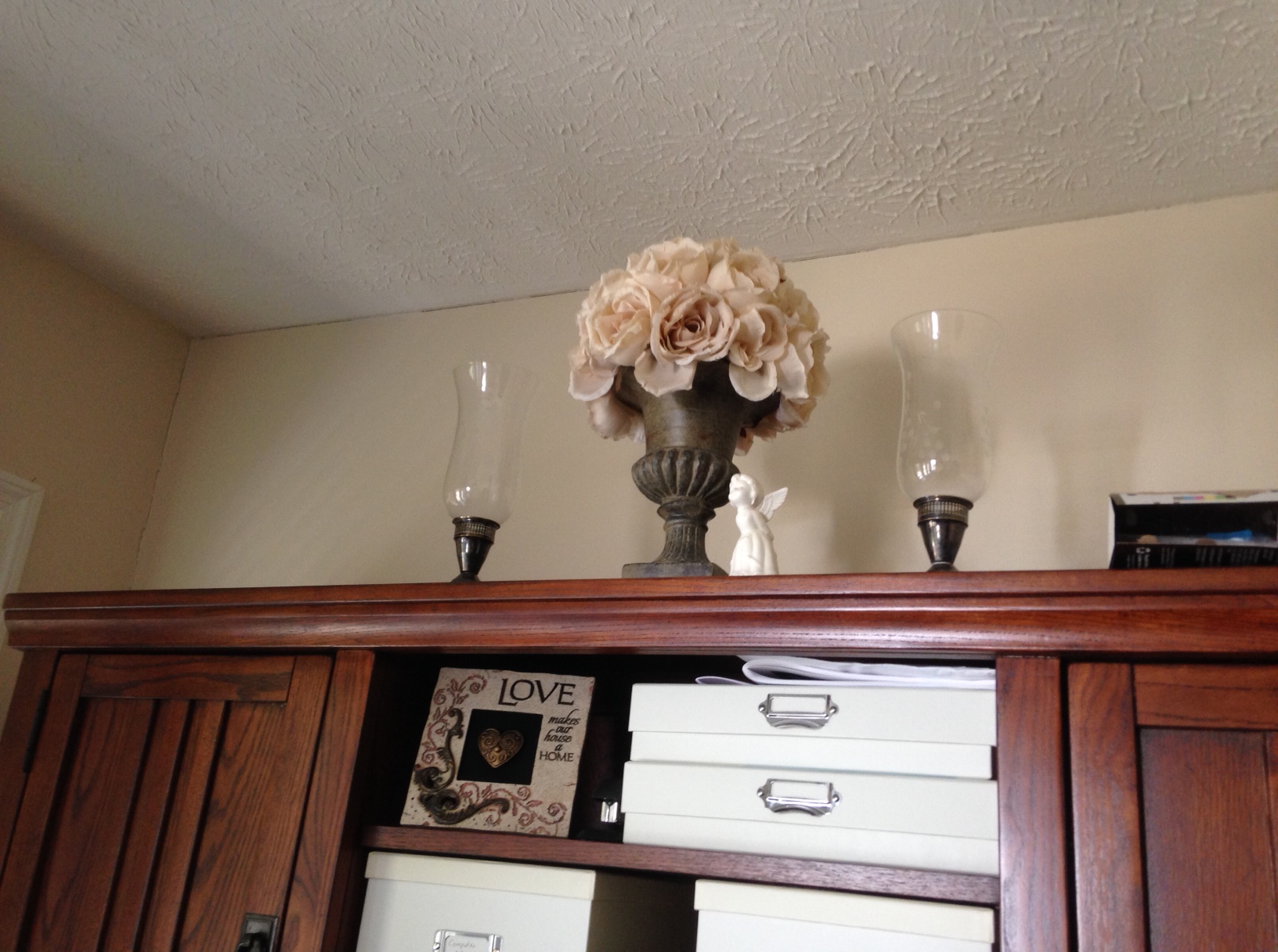 3. A decorating dilemma solved. I had some more formal, elegant candle holders, wedding gifts from dear friends, on the mantel in the family room, along with some birdhouses, which are a bit more casual. I didn’t feel the candle holders “fit” there, but I didn’t want to move them until I had something to replace them, and I wasn’t sure where to put them. Our living room is a bit dressier, but much smaller than in our previous house, so there was no place for them there. I went out to Hobby Lobby this week and found this neat little piece: