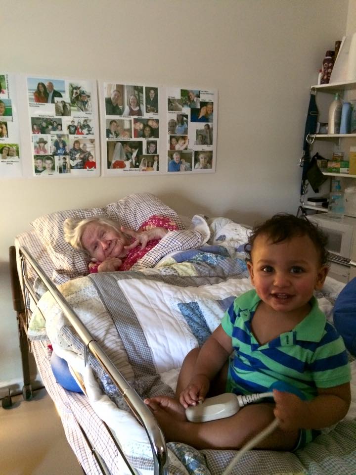 4. This photo that my husband took when taking Timothy to visit in GG’s room (we shortened Great-Grandma to GG and have taken to calling her that). She always lights up whenever he comes over, and I love his expression there. Thankfully he didn’t figure out the buttons on the bed controls yet. 🙂