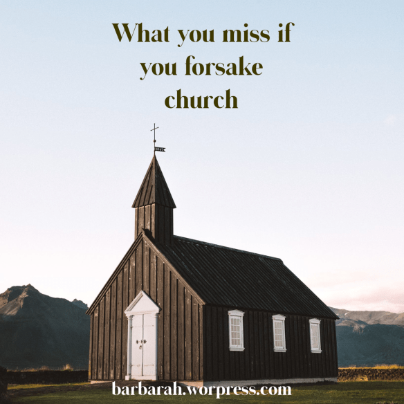 Another great post, Barbara. It breaks my heart that so many are leaving churches for the slightest reasons. I find with my kids generation too there is an attitude of “I don’t have to go to church to be a Christian” followed by a generalized statement that goes along the lines of “The church is so judgemental (or demanding, or boring, or insert whatever else). Such a spiritual battle for the hearts of our young people.