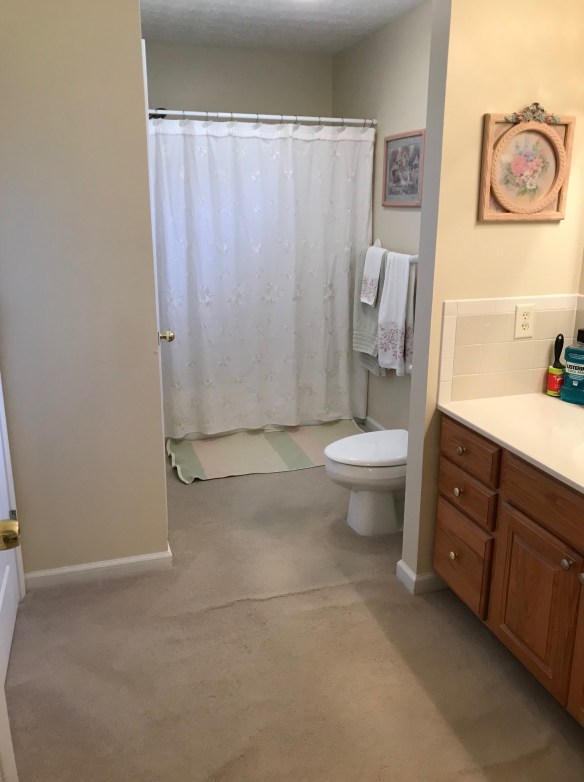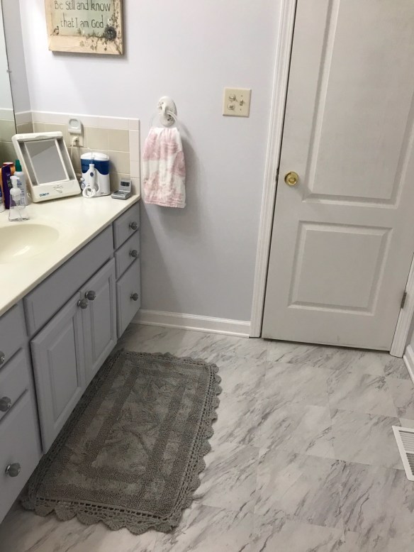 3. Bathroom makeover. Several months ago I mentioned we had replaced the carpet in our bathroom with new flooring. In the meantime, we’ve tried several sample colors on the walls and did an extensive search for bath mats. This week my husband got the walls and cabinets painted. I love it!