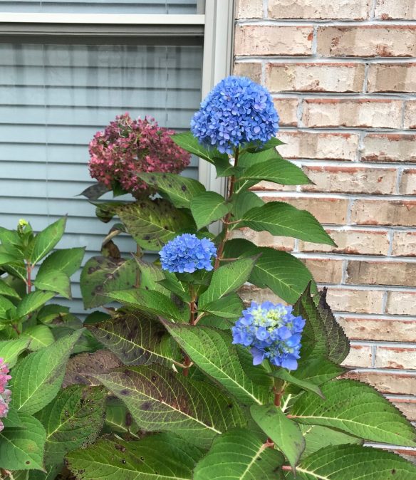 Then I looked out the back door and was surprised to see my hydrangea with fresh blooms: