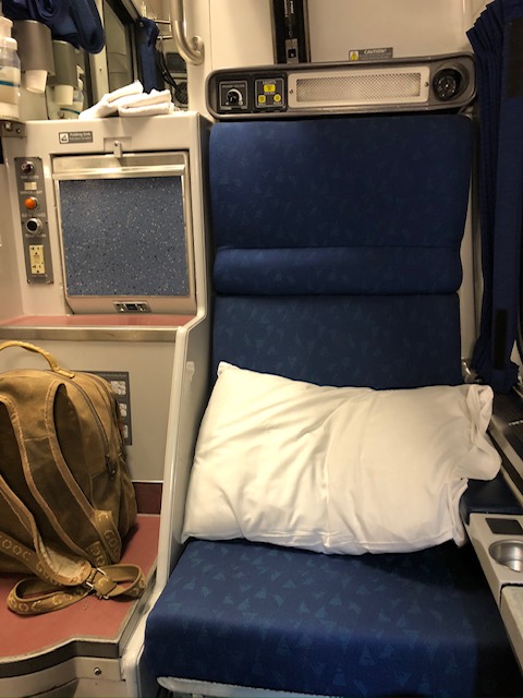 I don’t think the price was any less than airfare, especially with airlines lowering process to attract travelers right now. But it is private. Someone came to the sleeper car duly masked to see what Jeremy wanted for dinner and then to deliver it, but that’s the only person he interacted with. He did have a short layover in Penn Station, but they had masks and social distancing rules in place.