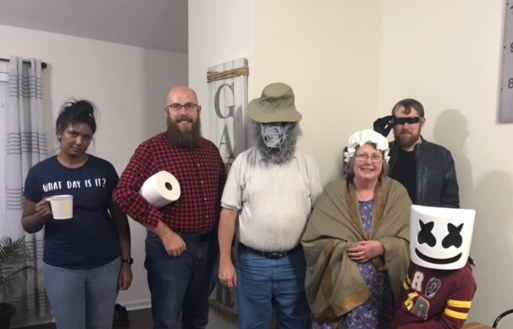 1. Dressing up. Because my son and daughter-in-law couldn’t take my grandson trick-or-treating, they had a family get-together Halloween night and asked us all to dress up. Even though I tried to think of something with minimal work, it was fun.