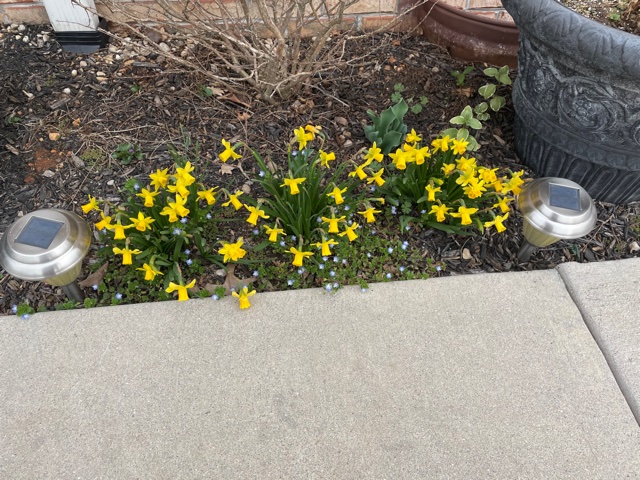 5. Signs of spring. While getting Sunday morning breakfast ready, I suddenly realized that it was light outside. The sunrise has been gradually occurring earlier, but it just hit me that it wasn’t dark that time of day. Though it’s still been cold at times, we’ve had some pleasantly warm afternoons. And these little beauties are up as well as some bigger ones in the back yard.