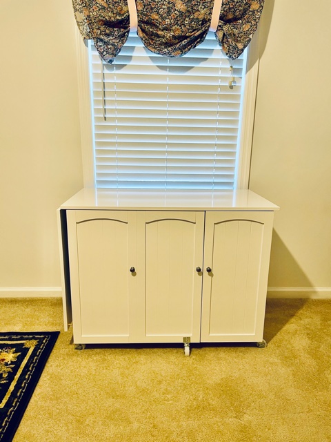 3. My late package came in! I almost never have trouble getting Amazon packages, but three of them disappeared somewhere between Amazon and here recently. One contained a sewing machine cabinet I had ordered to replace the desk I’ve been keeping my machine on. I know none of the packages were delivered and then stolen because we have a camera on our doorbell and would have seen that—plus Amazon still shows the packages as out for delivery. I got refunds for the other two, but held out on the cabinet, hoping it would come in. It finally did Thursday afternoon!
