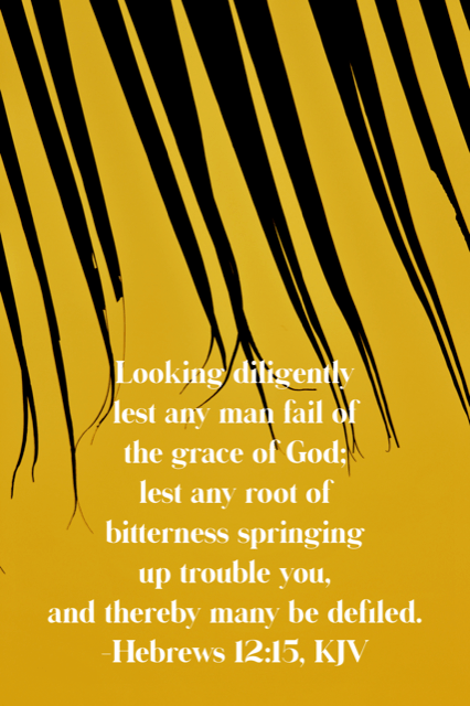 When a book I read recently mentioned a root of bitterness, some of a root’s imagery came to mind. The phrase comes from Hebrews 12:15: “See to it that no one fails to obtain the grace of God; that no ‘root of bitterness’ springs up and causes trouble, and by it many become defiled.” Deuteronomy 28:18b warns: “Beware lest there be among you a root bearing poisonous and bitter fruit.”