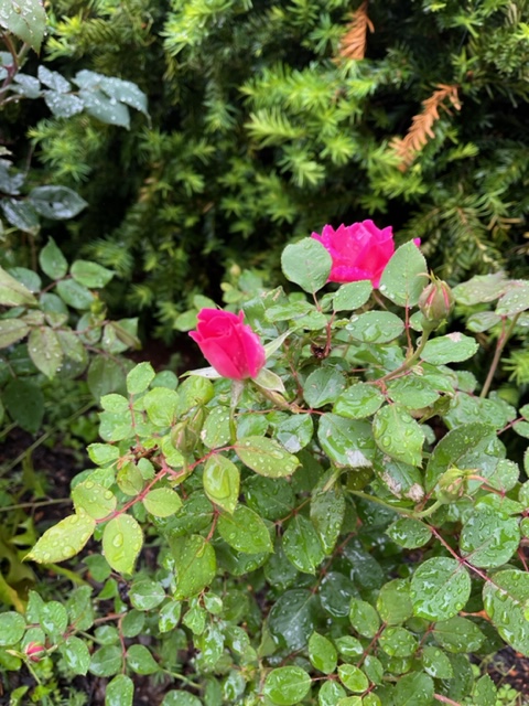 A sight for sore eyes: raindrops on roses. Hope you have a beautiful season with your garden in.