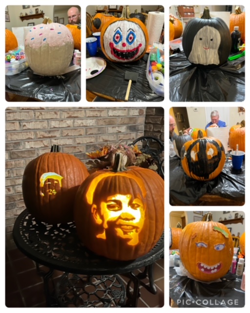 1. Pumpkin decorating/carving. Mittu made chili and cornbread. Jim and Jason were the only ones to carve their pumpkins this year. They’re the most proficient at it. Jason created his from a photo of Timothy.