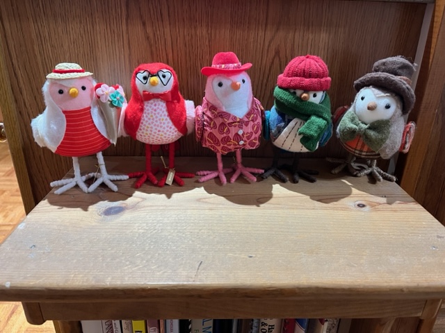 4. Adding to my bird collection. Some time ago, I bought one of these little birds at Target. I can’t remember which of the two on the right was my first. Then Timothy bought me the next two. I wanted to find one more to have two even pairs, but hadn’t seen any in a while. Then I recently saw a couple more. I couldn’t decide between the two on the left, so I got both. Now I am back to an uneven number, but that’s okay. I especially like the glasses on the one.