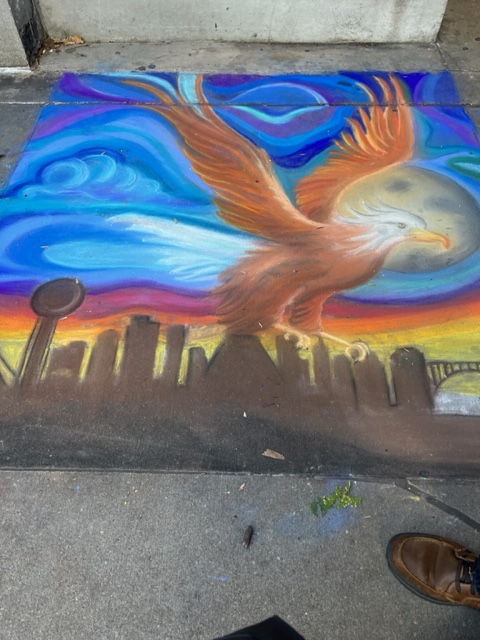 LOVE the first chalk drawing!! and the one with the eagle is cool. The city of Troy where I teach (across the Hudson River) does this type of thing once a year…i think June. I’ve only gone once because the parking was horrible and there’s all these one way streets and SO crowded! Glad you got a good lunch at the end!