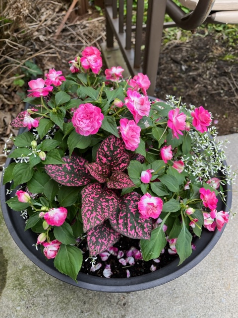 I love Mittu’s creativity — and what a lovely way to make your Mother’s Day morning special without a lot of fuss! Your double-pink impatiens are gorgeous. How kind of your husband to help get all the plants and cleaning needed to kick off spring blooms.
