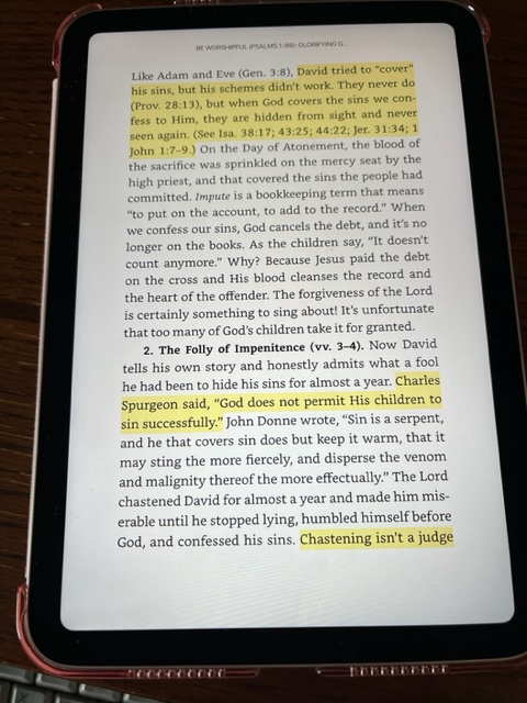 Highlighting. You can highlight passages in the book in five different colors. I usually just use the standard yellow for quotes I want to remember. But sometimes I’ve used blue for main points so I can see them at a glance.