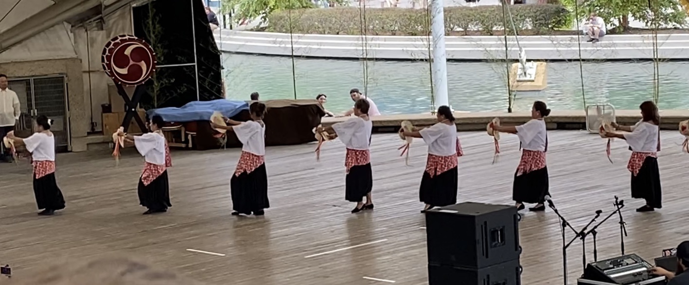 I thought it was funny that with their beautiful outfits and fans, these dancers wore white socks and sneakers.