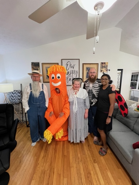 1. Family costume party. We’ve been doing these a few years now. My original idea for Jim and me was “Ma and Pa Ingalls, the later years.” 🙂 However, he ended up looking more Amish, and I looked more like the Colonial era. But we had fun. 🙂