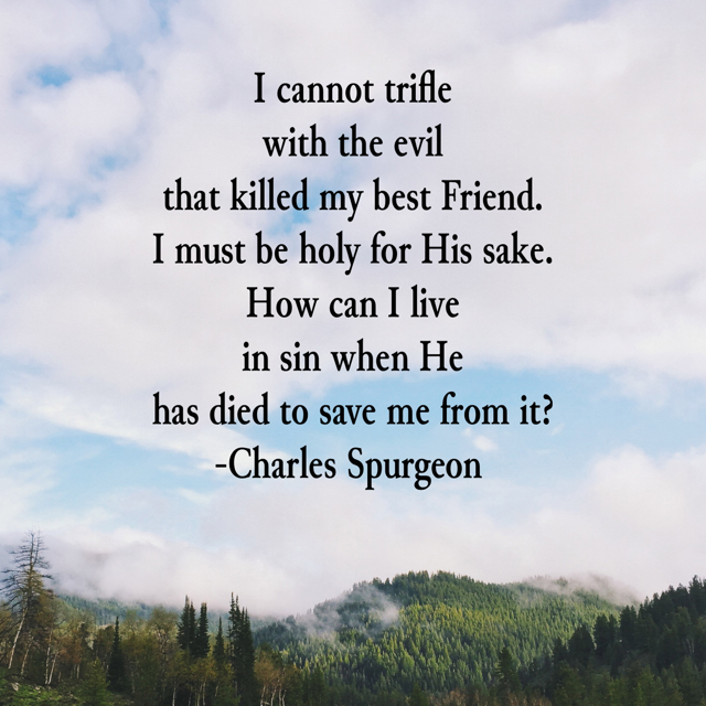 “I cannot trifle with the evil that killed my best Friend. I must be holy for His sake. How can I live in sin when He has died to save me from it?”–Charles Spurgeon.