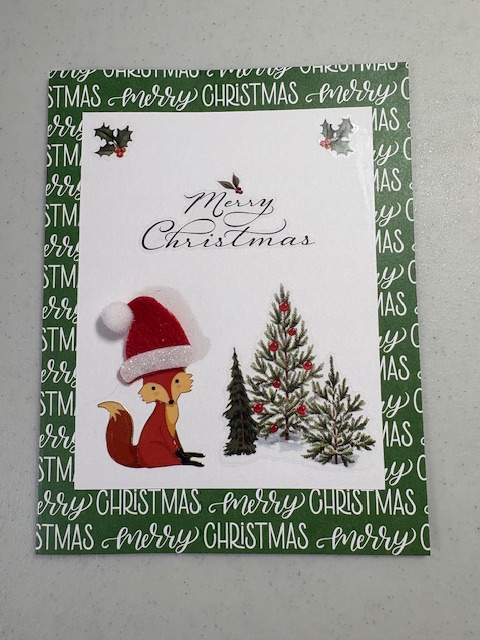 This was Jeremy’s. He likes foxes. The fox, trees, words, holly, and Santa hat were all stickers.