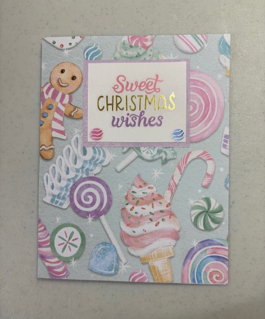 This was Mittu’s. I’ve seen a lot of Christmas decorations this year with this “sweets” theme and pastel colors. I’d love to decorate for Christmas with these if they didn’t clash with the stuff I already have. The wording as well as the candies under the words were stickers.