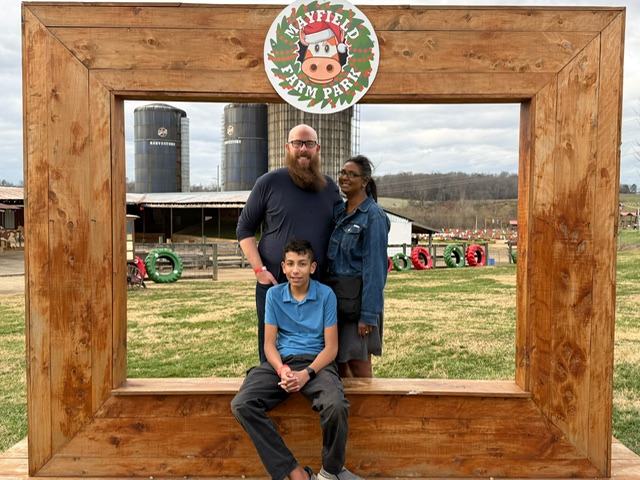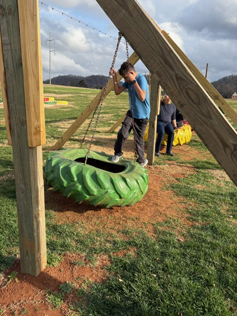 2. A mixed outing. Mayfield Dairies Farm Park advertised a Merry Mayfield Christmas.with all kinds of activities. We went on the last day, but it was strangely deserted. Only one other family was there besides us, though more came later. I only saw two employees on the field. About half the advertised activities were not available. Jeremy said it looked like one of those weird empty carnival movie sets where a maniacal clown was going jump out at us at any moment. But we played in what was available and had fun. The best part was an apple cannon, where you shoot old apples at targets. Strange as it sounds, it was very satisfying to do!