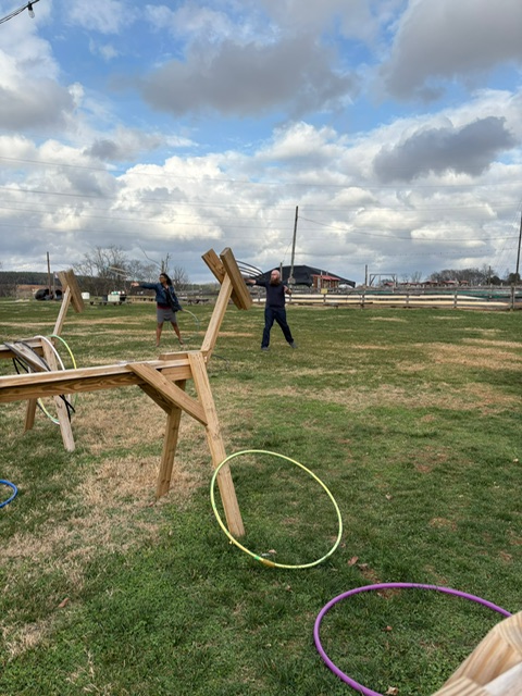 Lassoing the fake cows with hula hoops. πŸ™‚