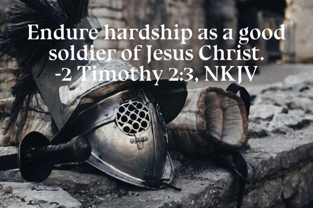 I like the NKJV translation of 2 Timothy 2:3: “You therefore must endure hardship as a good soldier of Jesus Christ.”