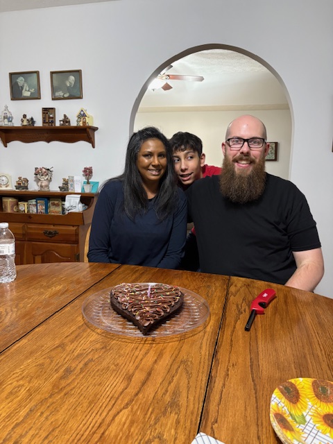 It’s a joy to celebrate her on her special day. Jason and Timothy made the heart-shaped brownie with frosting and sprinkles. Timothy is so tall now, we had to ask him to stoop down to be in the picture. π