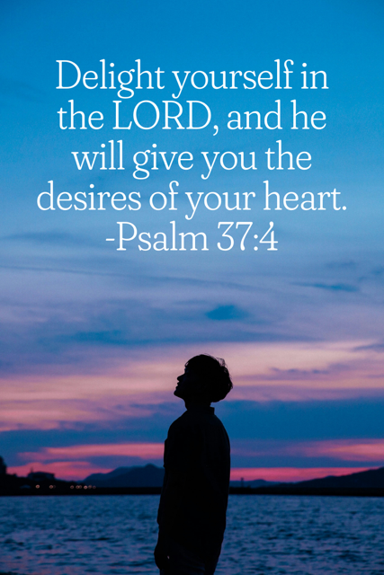 Delight yourself in the LORD, and he will give you the desires of your heart (Psalm 37:4).