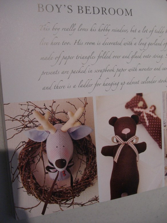 The book is divided into four sections: Inspiring Accents, Artistic Walls, Fresh Florals, and Delightful Favors. You can see the first few pages here. I tried to take a few photos which really don’t do justice to the loveliness of the book, but you can get a little taste of her style and the kind of projects included.