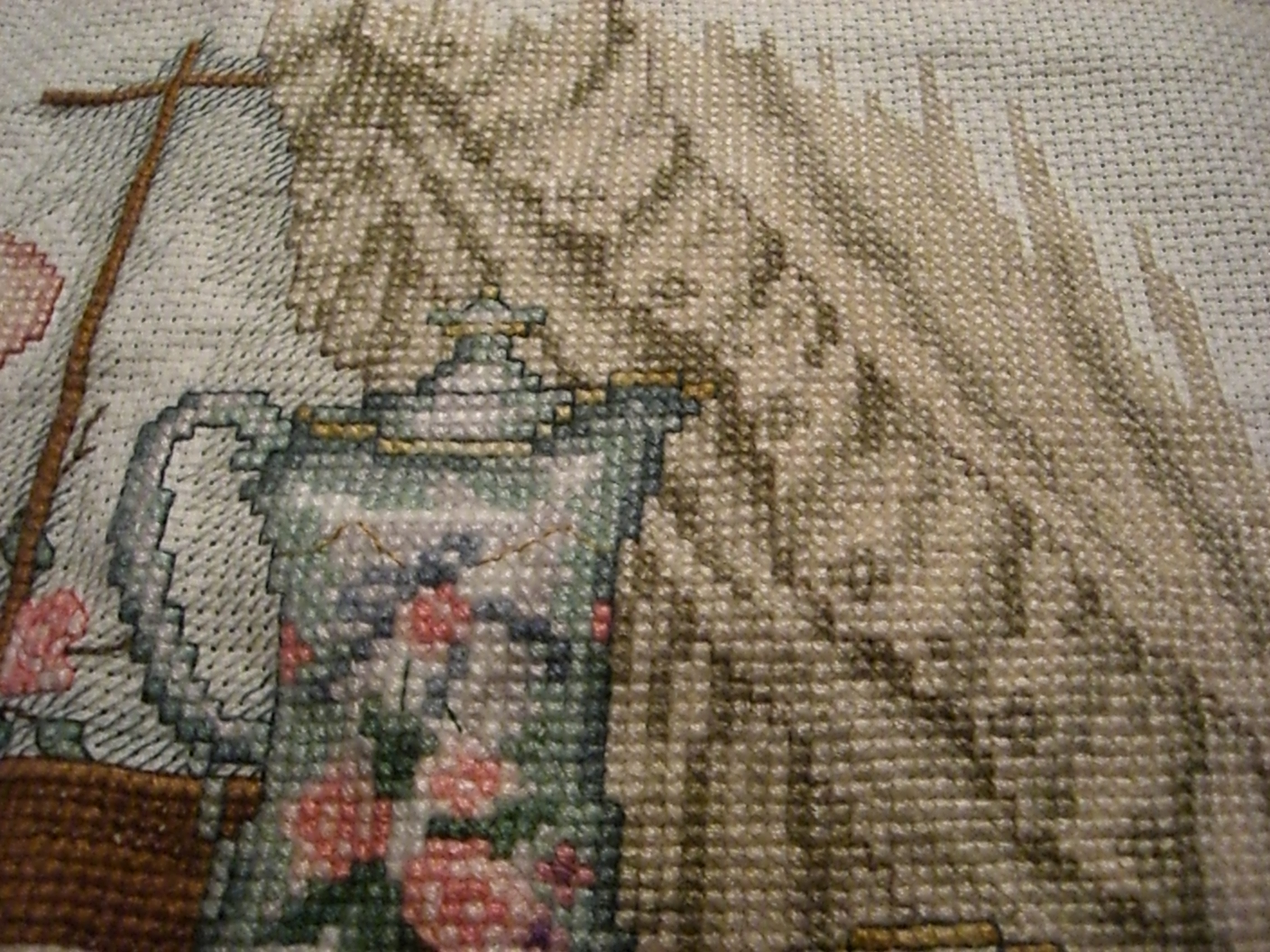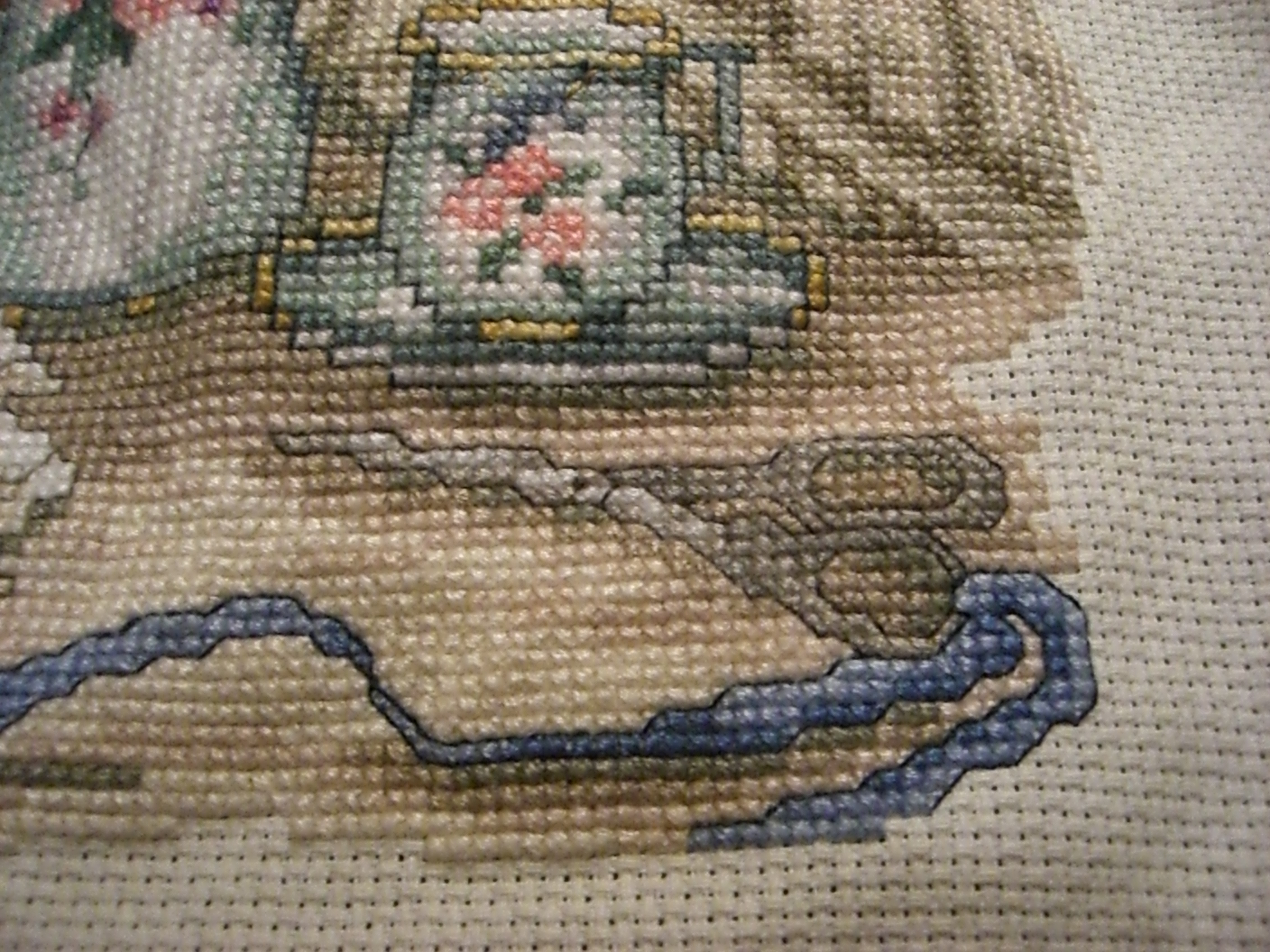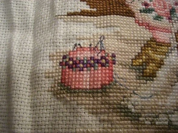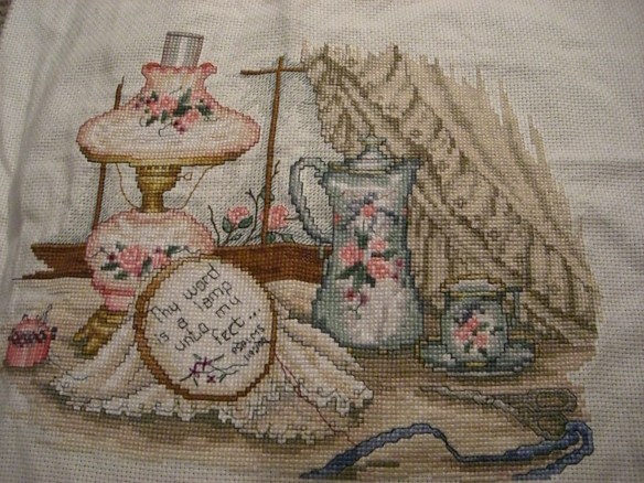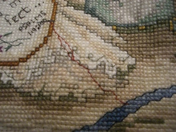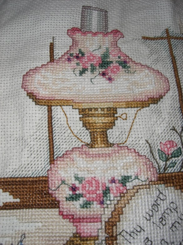 I did a lot of this kind of thing just before having children or when they were little, but as we had more children and they grew, I laid it aside. Most of what I made was either for children or for gifts, so I didn’t really have anything around the house that I had stitched. I’ve just gotten back to it the last few years and enjoy it though it takes reading glasses and a magnifying glass to see it. Here’s a more recent cross-stitched project: