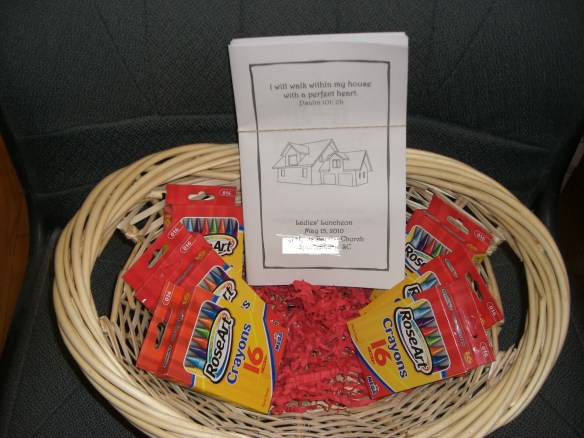 I just loved the little house with the heart in it, and it reminded me of Psalm 101:2b: “I will walk within my house with a perfect heart.” And I thought, “Hey! That might make a good theme for the ladies’ luncheon!”