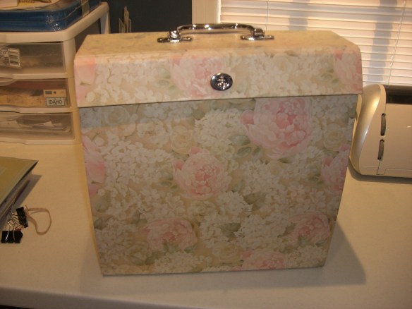 I took photos of the step-by-step process if anyone wants me to do a tutorial, but basically it was just a matter of gluing the card stock on, kind of trimming and gluing as I went. A glue stick worked fine on the flat surfaces, but Tacky glue worked better on anything that folded or curved over an edge.