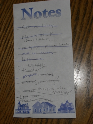 I think what I have resolved to do is spend this week sorting through things for the yard sale as much as I can, reminding myself it’s not likely I’ll get through the whole attic and shed — will just have to have another yard sale later on, maybe, or take the remainder to Salvation Army when we can. Then next week I’ll be getting ready (read: more than basic cleaning — you know how it is when company is coming) for the fellowship. Because I know if I clean the burner pans on the stove today, I’ll have a major boil-over between now and the fellowship and will have to do it again. 🙂