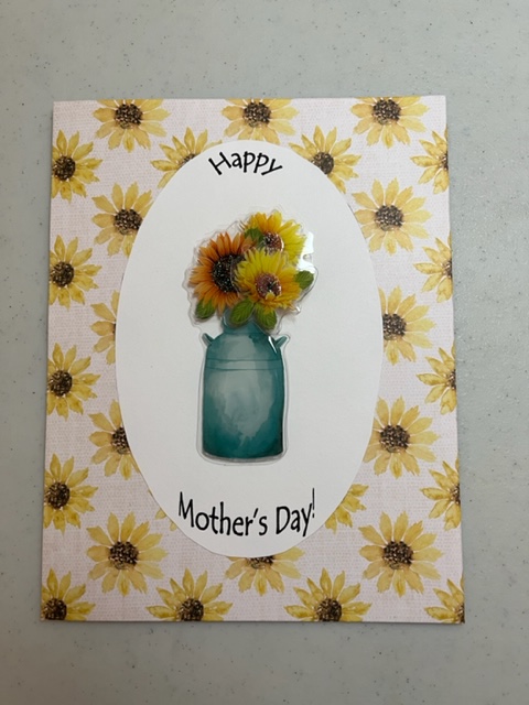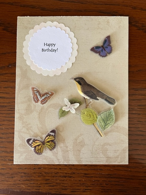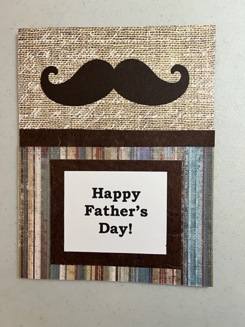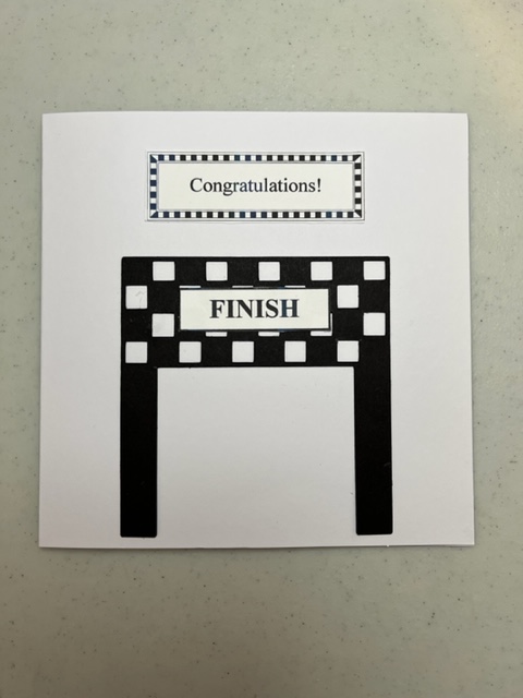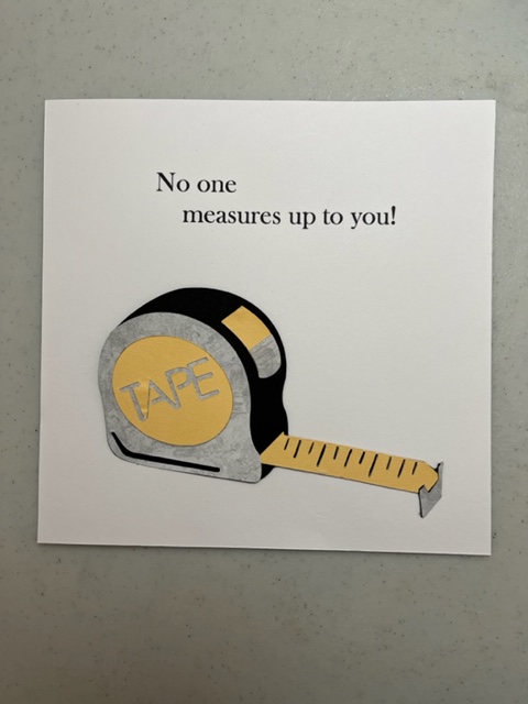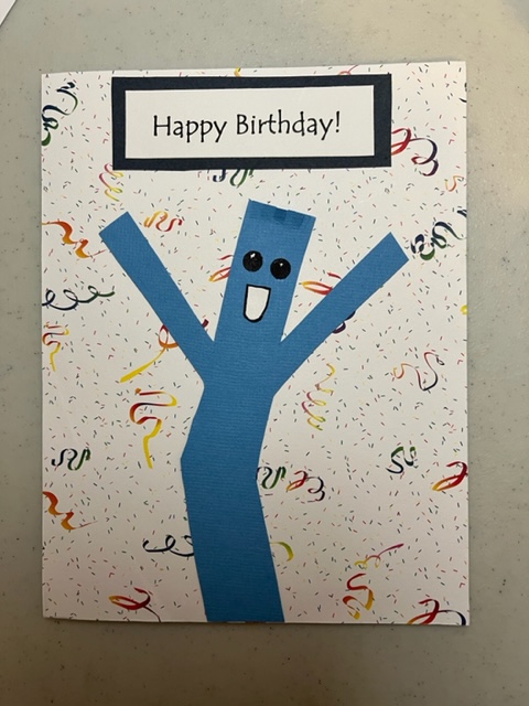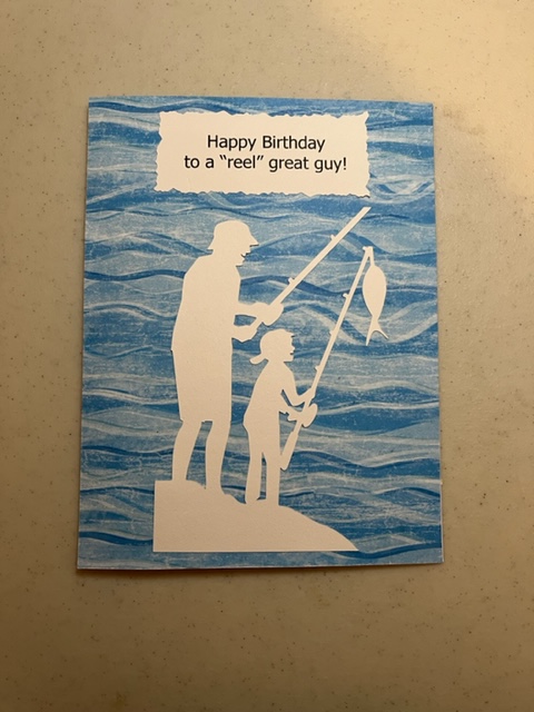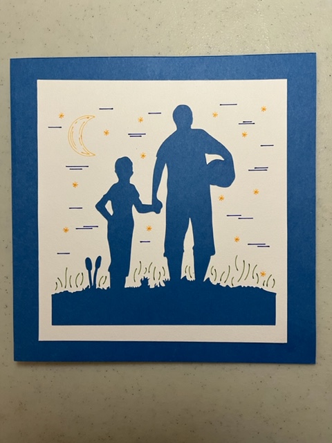 I had an interesting time with this one. I try to incorporate something of the recipient’s interests when I can instead of just making a generic card. All I could think of for Jason is that he liked his family, the Mandalorian, and electric cars (and coffee, but I’ve used that motif in cards several times before). I looked up electric cars in the Cricut image data base, but they didn’t have much of a selection. This one was originally part of a design that had several tiny pieces that I was growing frustrated trying to piece together, then gave up. I tried a couple of other ideas that were ok, but I wasn’t thrilled with. I picked up a scrap that had this part cut out–this was the paper left after I took out the designed part–and I decided I liked it as it was. So I cut it out again and placed it in a better and then cut out the bolt after seeing that incorporated in another design.