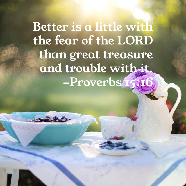 Good stewardship includes careful use of things. This verse always convicts me, and I like the way the KJV puts it: “The slothful man roasteth not that which he took in hunting: but the substance of a diligent man is precious (Proverbs 12:27). According to the Pulpit Commentary at the bottom of this page, this could refer to someone who caught game but was too lazy to roast it, so it went bad (that’s the part that convicts me when I clean rotted stuff out of the refrigerator), or someone who catches game but then doesn’t attend to it, so it escapes. Either way, the slothful, or lazy person, doesn’t attend to what he has, but “the substance of a diligent man is precious” (some translations say “prized.”)