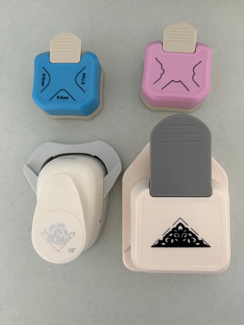 Punches can be expensive. When I haven’t had just the right size, I’ve used stencils instead. I’m not good at cutting things out on a line, so they edges aren’t as sharp as with a punch. But they’ll do. Sometimes a wobbly edge can be covered up with trim or a sticker.