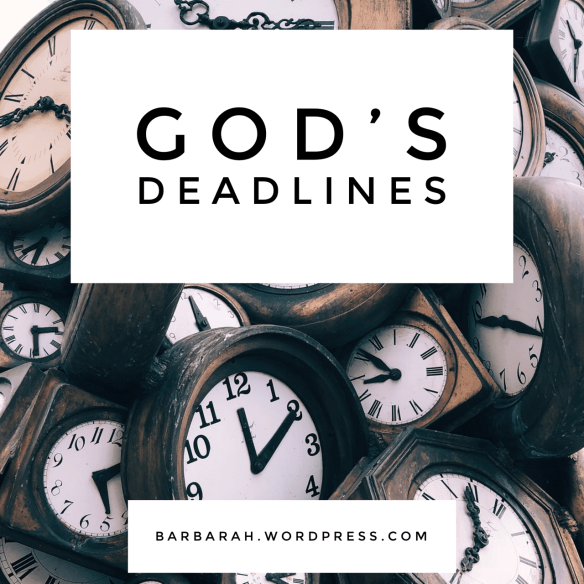 But God’s deadlines don’t refer just to chastening. Earlier this year it was on my heart to write to a woman who was like a second mother to me. But I put it off. I would be sending her a Mother’s Day card in a few weeks, and I planned to write a letter to send with it. But then I received word that she’d had a series of medical issues, was unresponsive, and was in her last days. I know with all the joys of heaven, she’s not thinking of not receiving a letter from me. But I have the regret that I didn’t respond to that prompting and share some words of encouragement. When my grandmother and aunt died, I also regretted that I had not kept in touch better in the last few years. A pastor’s wife told of the regret she felt when she leaned that a lady she saw regularly at some place of business had died suddenly. She realized that she had never spoken to her about the Lord. We only have so much time to do good.