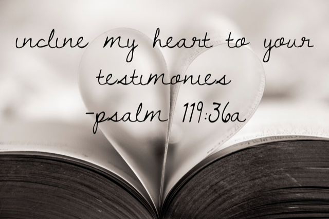 The times when we least want to hear God’s Word are the times we most need it. A verse I like to pray in those times is Psalm 119:36: “Incline my heart to your testimonies.”