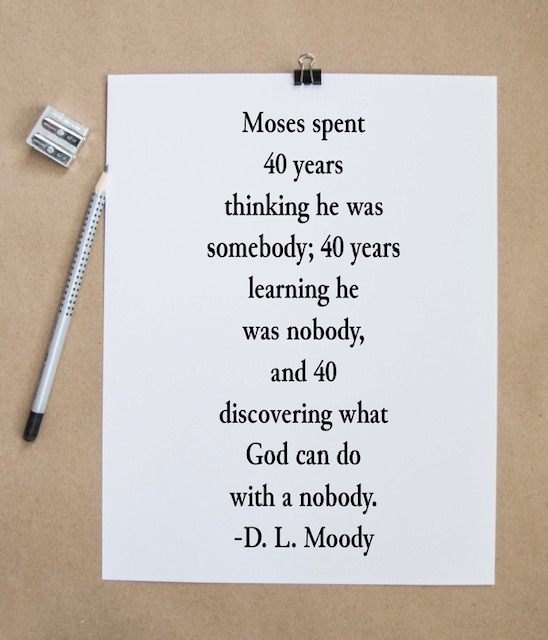 Moses spent 40 years thinking he was somebody; 40 years learning he was nobody,